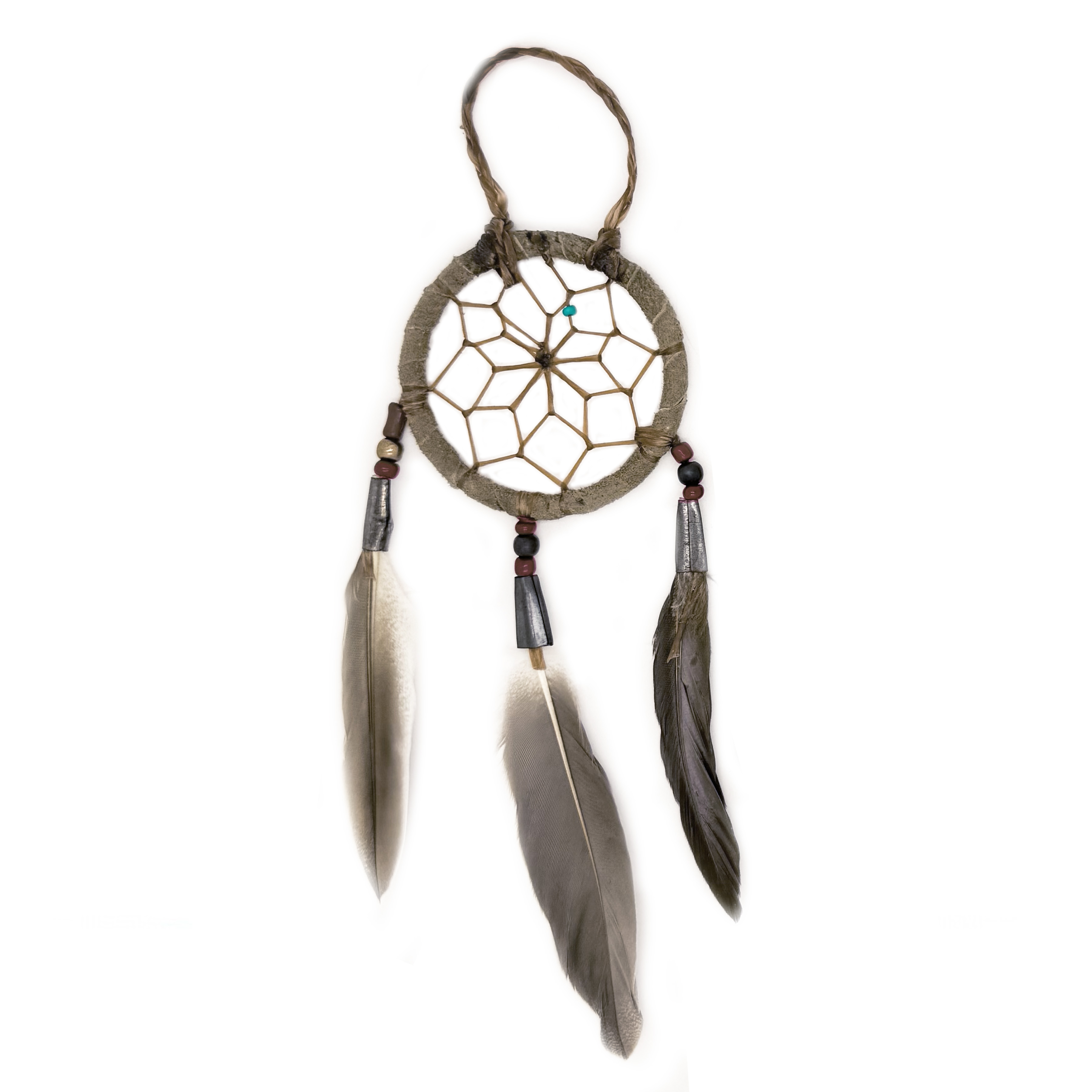 These Native American made Dreamcatchers have antiqued leather and feathers. Each piece comes with a description of the dream catcher. The traditional dream catcher is intended to protect the sleeping individual from negative dreams, while letting positive dreams through. The positive dreams would slip through the hole in the center of the dream catcher, and glide down the feathers to the sleeping person below. The negative dreams would get caught up in the web, and expire when the first rays of the sun struck them. Hang them in the closest window near your bed