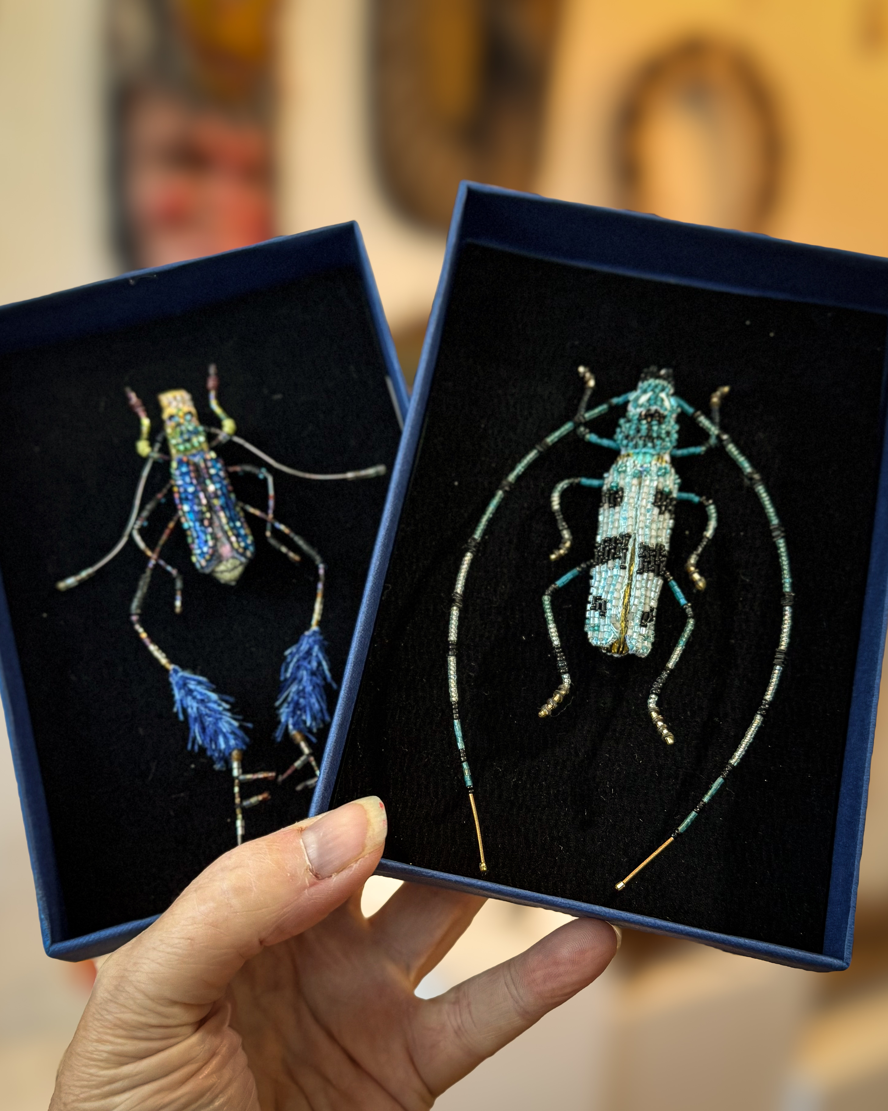 Travelore brooches and sculptures are inspired by nature and are handmade in small batches. These pieces are made-to-order by skilled artisans in India. Travelore is a small atelier and create nearly everything in a single facility from design to the final product. Slight variation in embroidery, size, shape and color is part of the handmade craft and may be apparent between pieces; this is not considered a defect but is celebrated as a mark of made by hand.