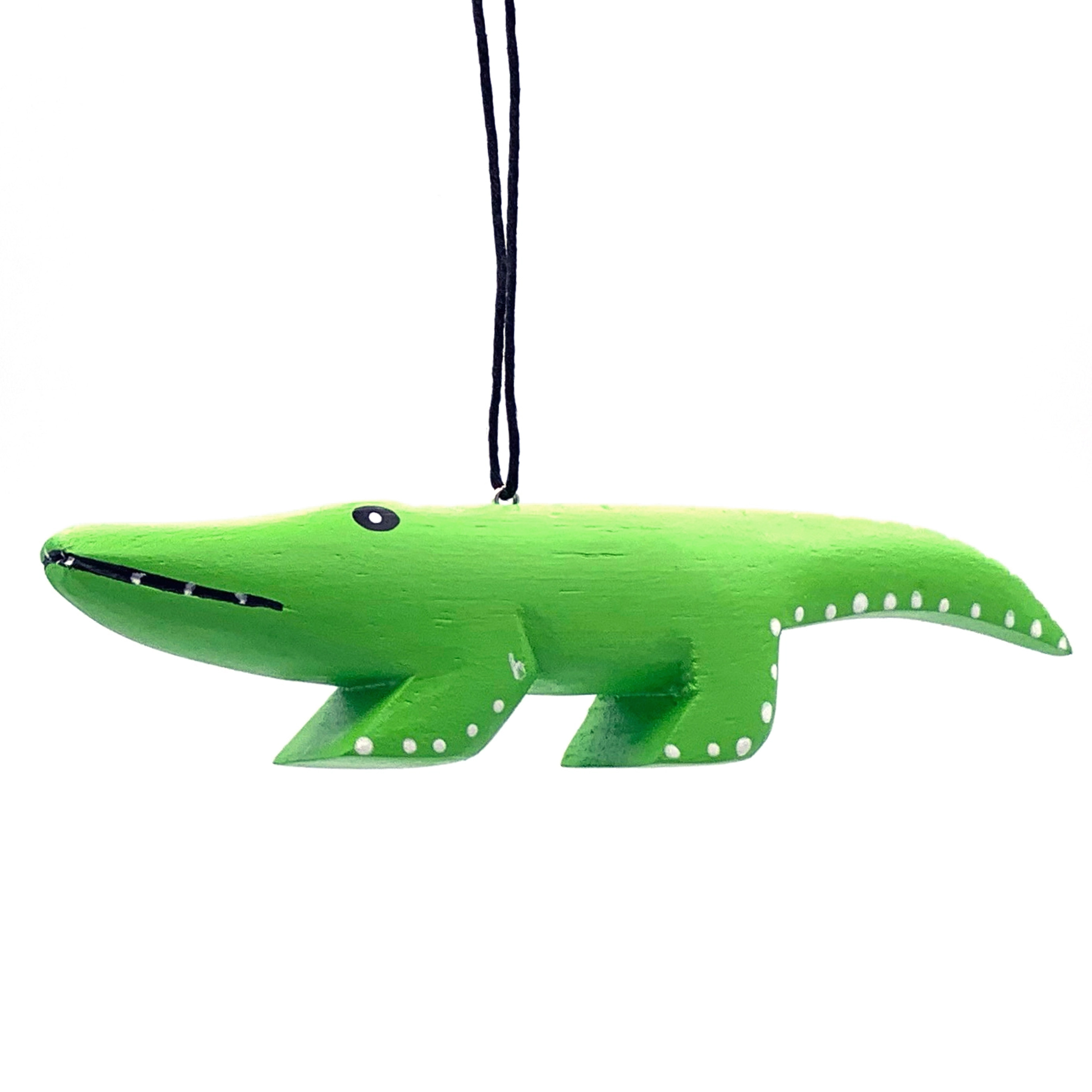 Lime Green Alligator Balsa Wood Ornament, Fair Trade Handmade from Nicaragua