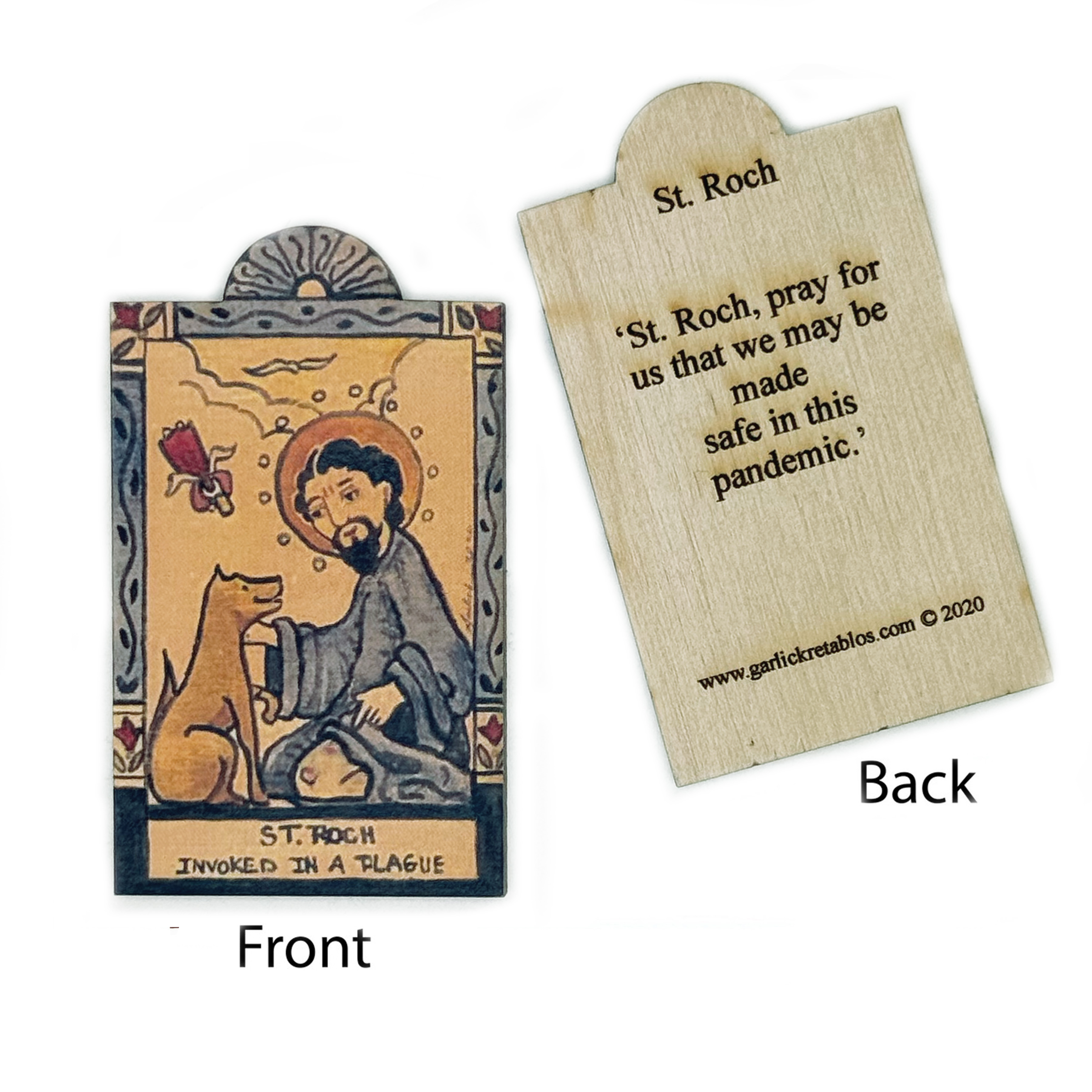 St. Roch Retablo Patron Saint  - There are not two distinct Saint Rochs, but there are variations in his name and recognition across different cultures. Saint Roch, also known as Rocco in Italy and Roque in Spain, is a single historical figure celebrated as the patron saint of dogs, plague victims, and invalids.