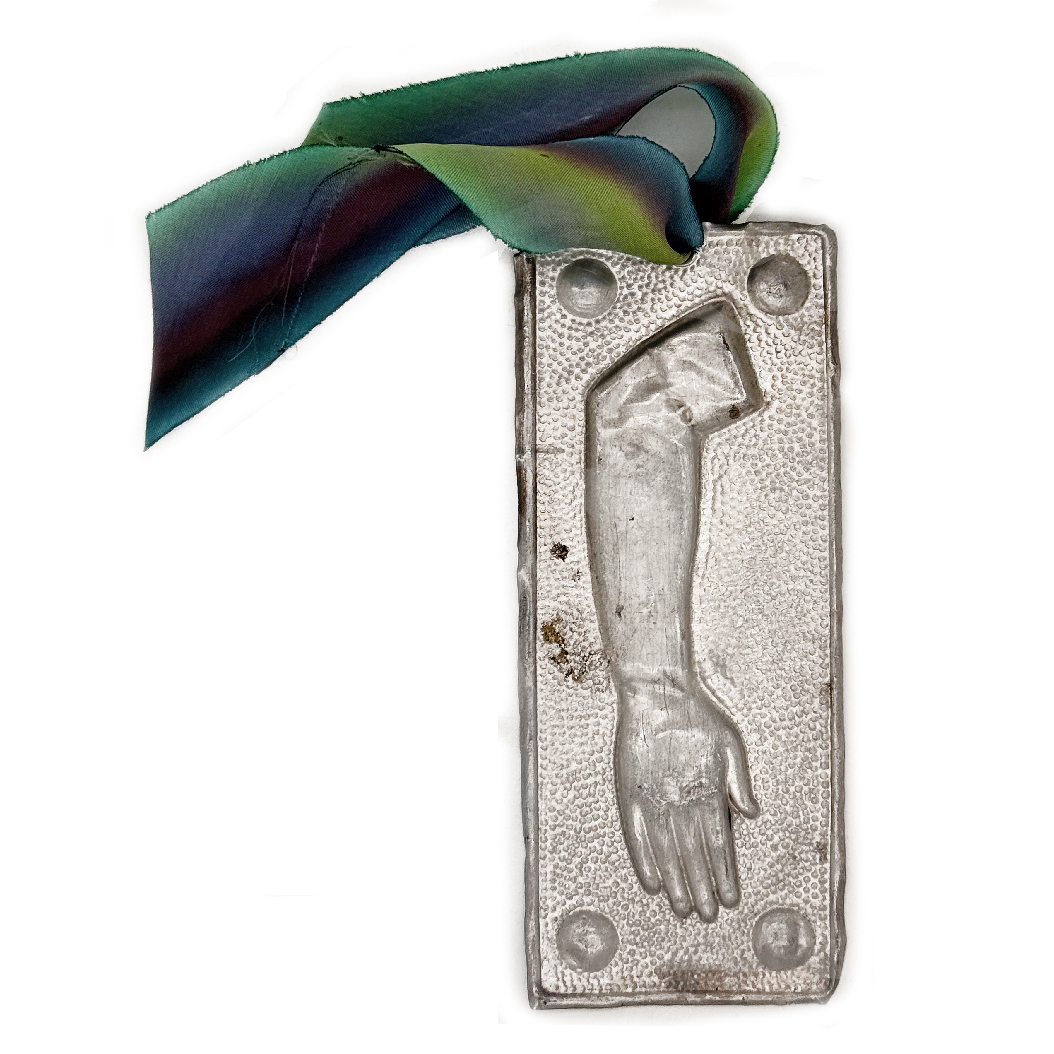 When purchasing a vintage metal piece, expect to find discoloration, pits, and signs of wear, typical of its age, which only enhance its authenticity and character. The front is embossed (raised), while the back is recessed.