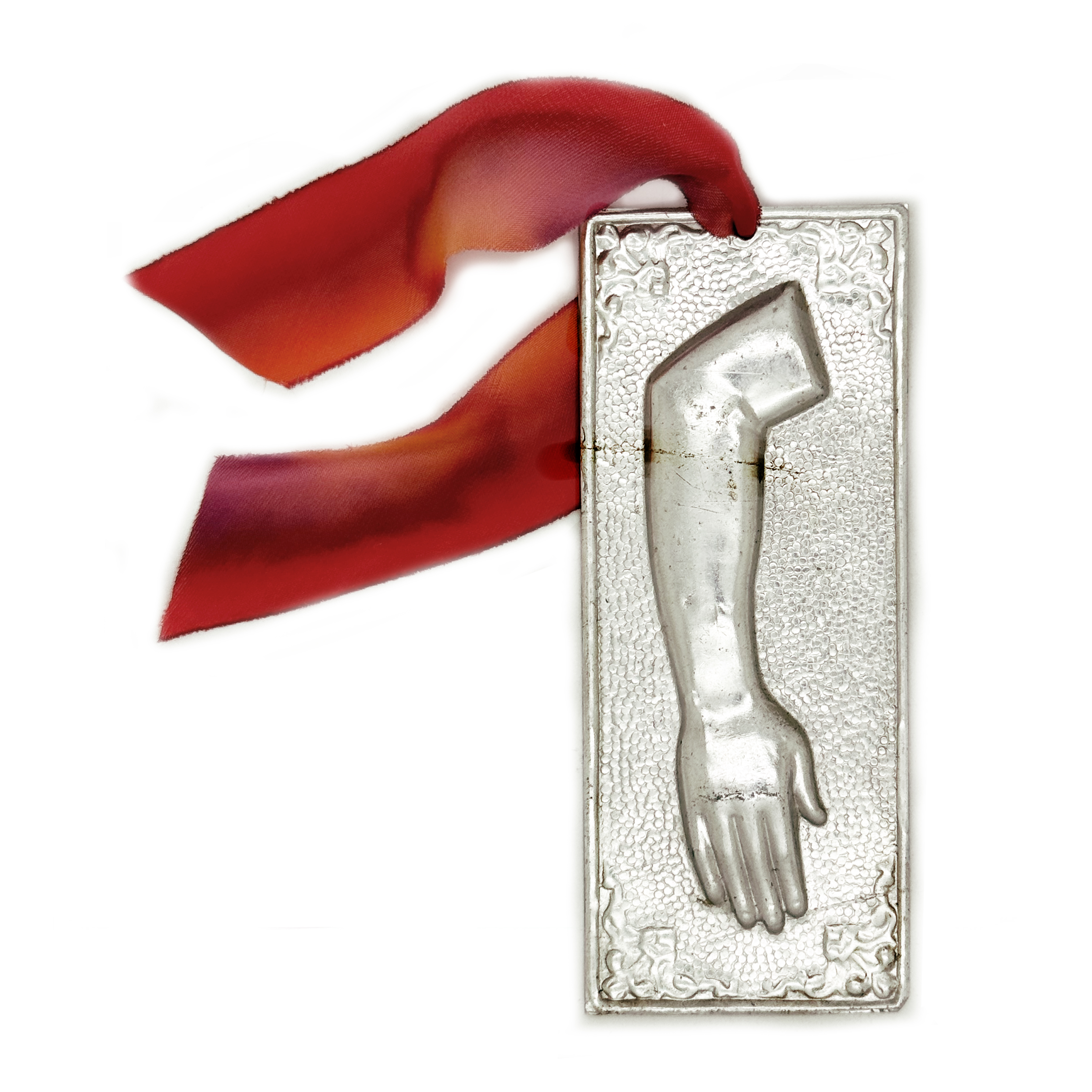 When purchasing a vintage metal piece, expect to find discoloration, pits, and signs of wear, typical of its age, which only enhance its authenticity and character. The front is embossed (raised), while the back is recessed.
